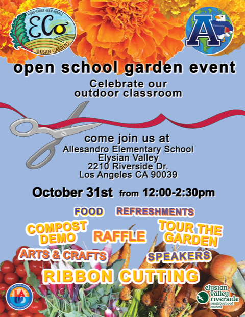 Allesandro Elementary Open School Garden Event Friday, October 31, 2025 12:00 PM 2:30 PM Allesandro Elementary 2210 Riverside Drive Los Angeles, CA, 90039 United States (map) Google Calendar ICS
