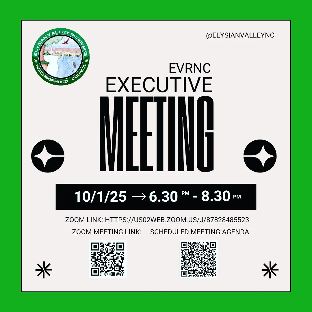 Elected by residents and serving as volunteers, we are one of 99 neighborhood councils in Los Angeles advising City officials on community matters. The Elysian Valley Riverside Neighborhood Council is funded by the City of Los Angeles. We strive to uphold principles of equality, integrity, and transparency. See our geographic boundaries ↓